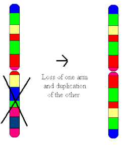 Tetrasomy 18p is caused by the presence of an additional isochromosome composed of two copies of the p arm of chromosome 18.[4] This extra chromosome is classified as a small supernumerary marker chromosome that forms de novo in a parent's egg or sperm or, in rare cases, is directly inherited from a parent carrier of the intact small supernumerary marker chromosome.[5] It has been reported in both the non-mosaic as well as the mosaic state. (The phrase "mosaicism" in this context means that some cells carry the genetic change while others do not.) In the grand majority of cases, the isochromosome is de novo. Although there has been some speculation that tetrasomy 18p may occur with a higher frequency in children of older mothers,[6][7] there is not enough evidence to say that this is definitively the case.