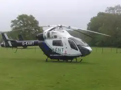 The Kent Air Ambulance was an organisation providing emergency medical services through the provision of a helicopter air ambulance covering the county of Kent in South East England. The helicopter was funded by the Kent Air Ambulance Trust (under the operating name of the Kent Air Ambulance Fund), which was a registered charity, raising money from public and private donations in excess of £4m every year between Kent, Sussex and Surrey.[1][2] In June 2007, the service extended it areas of operation to Surrey and Sussex requiring an additional helicopter. It now operates as Air Ambulance Kent Surrey Sussex.