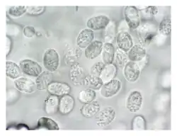 The oocysts are subspherical, smooth and measure 22-24 μm by 20-21 μm.