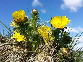 | Adonis vernalis | pheasant's eye, false hellebore | Ranunculaceae | The plant is poisonous, containing cardiostimulant compounds such as adonidin and aconitic acid.[42] |