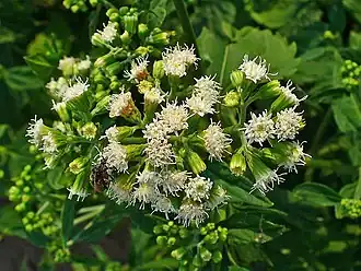 | Ageratina altissima | white snakeroot, white sanicle, richweed | Asteraceae | All parts contain a toxic oil known as tremetol, which is poisonous to cattle, horses, goats, sheep, and humans. Symptoms of ingestion include nausea and vomiting and it is often fatal. When the milk or meat of an animal that has eaten white snakeroot is consumed in sufficient quantities by humans, tremetol poisoning, also called milk sickness, may result.[44][45] | |