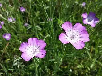 | Agrostemma githago | corn cockle | Caryophyllaceae | Contains the saponins githagin and agrostemmic acid. All parts of the plant are reported to be poisonous and may produce chronic or acute, potentially fatal poisoning, although it has been used in folk medicine to treat a range of ills, from parasites to cancer. There are no known recent clinical studies of corn cockle which provide a basis for dosage recommendations; however, doses higher than 3 g (of seeds) are considered toxic.[46] |