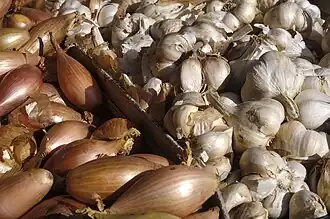 | Allium spp. | onion, garlic, leek, and chive | Amaryllidaceae | Many members of the genus Allium contain thiosulphate, which in high doses is toxic to dogs, cats, and some types of livestock. Cats are more sensitive.[4] |