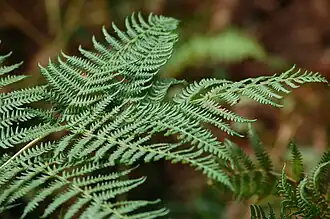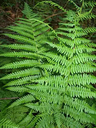 | Dryopteridaceae | wood ferns, buckler ferns, male ferns | Dryopteridaceae | The rhizomes of this family are known to contain phloroglucinol derived compounds, previously used to treat nematode infections. Dryopteris filix-mas poisonings consist of vomiting, diarrhea, vertigo, headache, tremor, cold sweats, dyspnea, cyanosis, convulsions, mental disturbances, visual impairment, or blindness which may be temporary or permanent. There is some record of Rumohra adiantiformis (formerly Arachnoides adiantiformis) causing contact dermatitis.[111] |