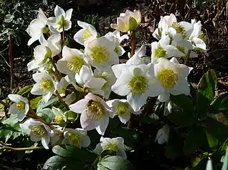 | Helleborus niger | Christmas rose | Ranunculaceae | Contains protoanemonin,[133] or ranunculin,[134] which has an acrid taste and can cause burning of the eyes, mouth, and throat, oral ulceration, gastroenteritis, and hematemesis.[135] | |