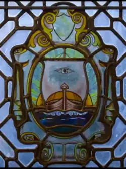 The school's traditional emblem depicts a Viking longboat under sail and was designed by the famed Glaswegian designer Herbert MacNair. The elements of the emblem all have meaning.