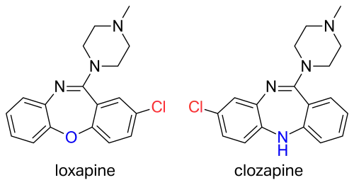 Loxapine is a dibenzoxazepine and is structurally very similar to clozapine, an atypical antipsychotic.
