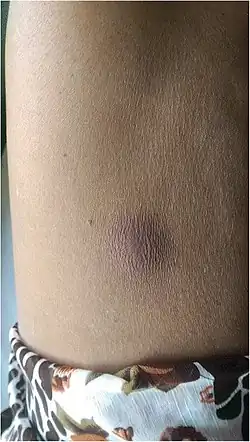 Melioidosis is an infectious disease caused by a gram-negative bacterium called Burkholderia pseudomallei.[1] Most people exposed to B. pseudomallei experience no symptoms, but complications can range from fever and skin changes to pneumonia, abscesses, and septic shock, which can be fatal.[1] Approximately 10% of people with melioidosis develop symptoms that last longer than two months, termed "chronic melioidosis".[1]