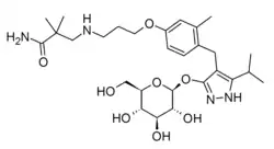 Mizagliflozin is an SGLT1 inhibitor developed as a potential treatment for chronic constipation.[1][2] It progressed as far as Phase II trials in humans but was not approved for medical use, however it has since been investigated for other applications.[3][4]