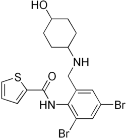 InChI=1S/C18H20Br2N2O2S/c19-12-8-11(10-21-13-3-5-14(23)6-4-13)17(15(20)9-12)22-18(24)16-2-1-7-25-16/h1-2,7-9,13-14,21,23H,3-6,10H2,(H,22,24)/t13-,14- YKey:SSLHKNBKUBAHJY-HDJSIYSDSA-N Y