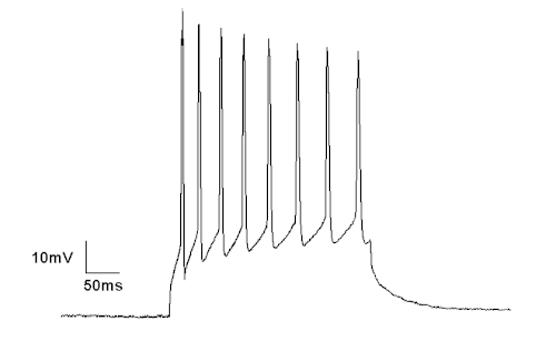 Neurons generate action potentials resulting from changes in the electric membrane potential. Neurons can generate multiple action potentials in sequence forming so-called spike trains. These spike trains are the basis for neural coding and information transfer in the brain. Spike trains can form all kinds of patterns, such as rhythmic spiking and bursting, and often display oscillatory activity.[27] Oscillatory activity in single neurons can also be observed in sub-threshold fluctuations in membrane potential. These rhythmic changes in membrane potential do not reach the critical threshold and therefore do not result in an action potential. They can result from postsynaptic potentials from synchronous inputs or from intrinsic properties of neurons.