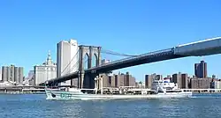 Metal, glass, plastic, and cartons collected citywide are taken to the Sunset Park Material Recovery Facility in Brooklyn.[18] Recyclables from the Bronx and Queens are taken there by barge. There the recyclables are sorted by eddy current separators and optical scanners, then baled for sale. Clear glass is sold to bottlers and colored glass is sold as construction aggregate. Roughly 15% of material entering the facility ends up in a landfill, either because it cannot be separated or is not economically recyclable.[23]