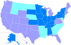 Osteopathic physicians are not evenly distributed in the United States. States with the highest concentration of osteopathic physicians are Oklahoma, Iowa, and Michigan, where osteopathic physicians comprised 17–20% of the physician workforce in 2011.[26] The state with the greatest number of osteopathic physicians is Pennsylvania, with 8,536 DOs in active practice in 2018.[23] The states with the lowest concentrations of DOs are Washington, D.C., North Dakota, and Vermont, where only 1–3% of physicians have an osteopathic medical degree.[25][26] Public awareness of osteopathic medicine likewise varies widely in different regions. In 2003, people living in Midwest states were the most likely to be familiar with osteopathic medicine.[27] In the Northeastern United States, osteopathic physicians provided more than one-third of general and family medicine patient visits between 2003 and 2004.[28][10]