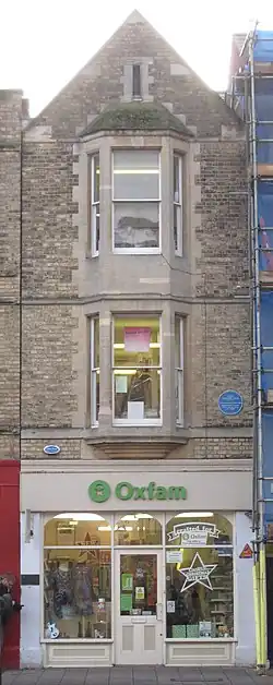 The first permanent Oxfam gift shop was on Broad Street, Oxford; it opened in 1947.[5] Oxfam's first paid employee was Joe Mitty, who began working at the Oxfam shop on Broad Street, Oxford, on 9 November 1949. Engaged to manage the accounts and distribute donated clothing, he originated the policy of selling anything people were willing to donate, and developed the shop into a national chain.[6]