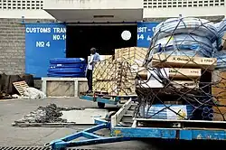 Oxfam relief supplies outside the Siginon warehouse in Nairobi, Kenya