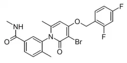 PH-797804 is a drug which acts as a selective inhibitor of the enzyme p38 mitogen-activated protein kinase (p38 MAPK). It has antiinflammatory effects and has been researched for the treatment of inflammatory lung conditions such as chronic obstructive pulmonary disease and COVID-19. While it has not been adopted for clinical use, it remains widely used in research.[1][2][3][4][5]