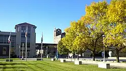 The campus consists of new as well as historic buildings. The Palmer College of Chiropractic Academic Health Center (opened in 2007), which contains the College's outpatient clinic, welcome center, Clinical Radiology Department (featuring digital radiology), Chiropractic Rehabilitation and Sports Injury Department, and the Clinical Learning Resource Center.[9] Other buildings include the David D. Palmer Health Sciences Library,[10] the Memorial Building (the oldest building on campus), Campus Center, B.J. and Mabel Palmer Residence, Vickie Anne Palmer Hall, among others.