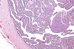 Pelvic inflammatory disease (PID), also known as pelvic inflammatory disorder, is an infection of the upper part of the female reproductive system, mainly the uterus, fallopian tubes, and ovaries, and inside of the pelvis.[2][5] Often, there may be no symptoms.[1] Signs and symptoms, when present, may include lower abdominal pain, vaginal discharge, fever, burning with urination, pain with sex, bleeding after sex, or irregular menstruation.[1] Untreated PID can result in long-term complications including infertility, ectopic pregnancy, chronic pelvic pain, and cancer.[2][3][4]