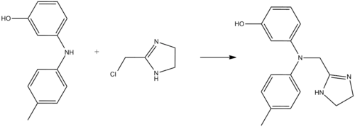 Phentolamine can be synthesized by alkylation of 3-(4-methylanilino)phenol using 2-chloromethylimidazoline:[17][18]