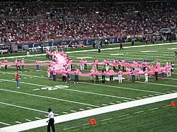 Breast cancer organizations use the pink ribbon to associate themselves with breast cancer, to promote breast cancer awareness, and to support fundraising.[4] Some breast cancer-related organizations, such as Pink Ribbon International,[5] use the pink ribbon as their primary symbol. Susan G. Komen for the Cure uses a stylized "running ribbon" as their logo.[6]