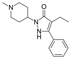 - ^ Ebnöther A, Jucker E, Lindenmann A (1959). "Über neuartige, basisch substituierte Pyrazolon-Derivate. Untersuchungen über synthetische Arzneimittel. 3. Mitteilung". Helvetica Chimica Acta. 42 (4): 1201–1214. doi:10.1002/hlca.19590420415.