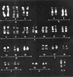 - ^ Yunis JJ, Sanchez O (1973). "G-banding and chromosome structure". Chromosoma. 44 (1): 15–23. doi:10.1007/BF00372570. PMID 4130183. S2CID 8711896.