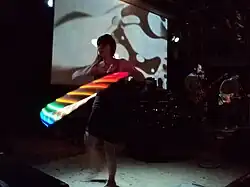 A psychedelic festival is a gathering that promotes psychedelic music and art in an effort to unite participants in a communal psychedelic experience.[47] Psychedelic festivals have been described as "temporary communities reproduced via personal and collective acts of transgression... through the routine expenditure of excess energy, and through self-sacrifice in acts of abandonment involving ecstatic dancing often fueled by chemical cocktails."[47] These festivals often emphasize the ideals of peace, love, unity, and respect.[47] Notable psychedelic festivals include the biennial Boom Festival in Portugal,[47] Ozora Festival in Hungary, Universo Paralello in Brazil as well as Nevada's Burning Man[48] and California's Symbiosis Gathering in the United States.[49]