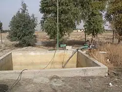 Irrigation water is pumped from this tank which stores effluent received from a constructed wetland in Haran-Al-Awamied, Syria.