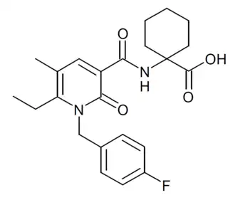 1-[[6-ethyl-1-[(4-fluorophenyl)methyl]-5-methyl-2-oxopyridine-3-carbonyl]amino]cyclohexane-1-carboxylic acid