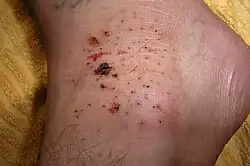Sea urchin injuries are caused by contact with sea urchins, and are characterized by puncture wounds inflicted by the animal's brittle, fragile spines.[1]: 431 Injuries usually occur when swimmers, divers, surfers, or fishers accidentally touch or step on them.[2]