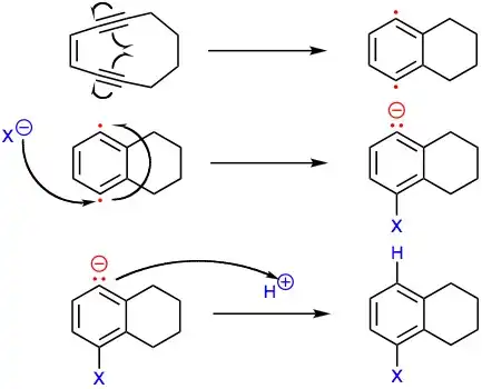 - ^ a b Perrin, Charles L.; Rodgers, Betsy L.; O'Connor, Joseph M. (2007). "Nucleophilic Addition to a p-Benzyne Derived from an Enediyne: A New Mechanism for Halide Incorporation into Biomolecules". Journal of the American Chemical Society. 129 (15): 4795–4799. Bibcode:2007JAChS.129.4795P. doi:10.1021/ja070023e. PMID 17378569.