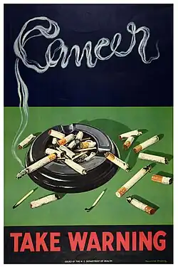 In 1954, the British Doctors Study, a prospective study of some 40 thousand doctors for about 2.5 years, confirmed the suggestion, based on which the government issued advice that smoking and lung cancer rates were related.[11] In January 1964, the United States Surgeon General's Report on Smoking and Health likewise began suggesting the relationship between smoking and cancer.[43]