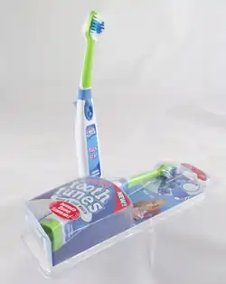 Tooth Tunes is a discontinued line of children's toothbrushes released by the Tiger Electronics division of Hasbro in 2007.[1] Each brush played a two-minute song clip from a particular artist to encourage the user to brush their teeth for the dentist-recommended two minutes. A single toothbrush came with one song, and had a manufacturer's suggested retail price of US$9.99. Two more types, Turbo Tooth Tunes and Tooth Tunes Junior, were introduced in 2008. In 2012, nine new Tooth Tunes toothbrushes were introduced.[2]