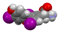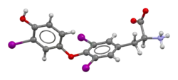 - ^ Dietrich JW, Brisseau K, Boehm BO (August 2008). "[Absorption, transport and bio-availability of iodothyronines]" [Absorption, transport and bio-availability of iodothyronines]. Deutsche Medizinische Wochenschrift (in German). 133 (31–32): 1644–1648. doi:10.1055/s-0028-1082780. PMID 18651367.