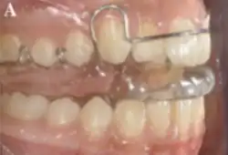 - Double cantilever spring positioned at the front surface of the central incisors[13]