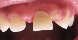 - ^ Patel, GaureshKumar; Gujjari, SheelaKumar; Annapoorna, Bm; Veerendra Kumar, Sc (2013). "Management of chronic luxated central incisor with hopeless prognosis". Journal of Indian Society of Periodontology. 17 (5): 670–675. doi:10.4103/0972-124X.119292. ISSN 0972-124X. PMC 3808027. PMID 24174766.