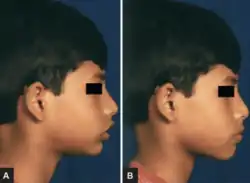- ^ a b Singh, Mousumi Goswami; Vashisth, Pallavi; Chaudhary, Seema; Sinha, Ashish (January 2012). "Early treatment outcomes of class II malocclusion with twin-block facial profile and cephalometric changes". Journal of Oral Biology and Craniofacial Research. 2 (1): 61–66. doi:10.1016/S2212-4268(12)60015-3. PMC 3942015. PMID 25756036.
