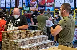 By the end of March, states were in a bidding war against each other and the federal government for scarce medical supplies such as N95 masks, surgical masks, and ventilators.[64][65][66] Meanwhile, as states scrambled to purchase supplies at inflated prices from third party distributors (some of which later turned out to be defective), hundreds of tons of medical-grade face masks were shipped by air freight to foreign buyers in China and other countries.[56]