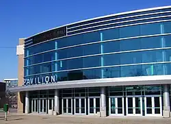 UIC is Chicago's largest university with more than 33,000 students, 12,000 employees, 16 colleges and the state's major public medical center. The East Campus was designed in the brutalist style by Walter Netsch.[28] The plan included second-story walkways that connected all of the buildings.[29] Some of the later buildings in Netsch's design were not rectilinear (the Behavioral Sciences Building) and even irregularly shaped (Science and Engineering South, and the never-completed Art & Architecture building). These demonstrated his idea of "field theory": designs which used squares and rotations of squares superimposed on one another. While the buildings are largely intact, the walkways were taken down in phases during the early 1990s to make the campus more welcoming.[30] Considerable effort has been expended to modify the original Netsch campus plan to create the feel of a traditional college campus. For example, the area in front of the main administration building, University Hall, has been the site of several renovations in the last decade; and, Credit Union 1 Arena (formerly the UIC Pavilion, a sports arena) was added in 1982.