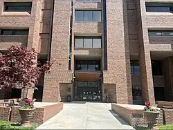 The main entrance of University of Missouri–Kansas City School of Medicine in the Health Sciences District.