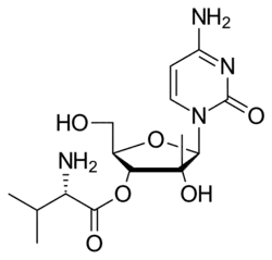 Valopicitabine (NM-283) is an antiviral drug which was developed as a treatment for hepatitis C, though only progressed as far as Phase III clinical trials. It acts as an RNA-dependent RNA polymerase inhibitor. It is a prodrug which is converted inside the body to the active form, 2'-C-methylcytidine triphosphate.[1][2][3][4][5]