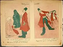 The relation between violence against women and marriage laws, regulations and traditions has also been discussed.[82][83] Roman law gave men the right to punish their wives, even to the point of death.[84] The US and English law subscribed until the 20th century to the system of coverture, a legal doctrine where upon marriage, a woman's legal rights were subsumed by her husband's.[85] Common-law in the United States and in the UK allowed for domestic violence[86] and in the UK, before 1891, the husband had the right to inflict moderate corporal punishment on his wife to keep her "within the bounds of duty".[87][88] Today many countries severely restrict the rights of married women: for example, in Yemen, marriage regulations state that a wife must obey her husband and must not leave home without his permission.[89] In Iraq husbands have a legal right to "punish" their wives. The criminal code states in Paragraph 41 that there is no crime, if an act is committed while exercising a legal right; examples of such legal rights include: "The punishment of a wife by her husband, the disciplining by parents and teachers of children under their authority within certain limits prescribed by law or by custom".[90] In the West, married women faced discrimination until some decades ago: for instance, in France, married women received the right to work without their husband's permission in 1965.[91] In Spain, during the Franco era, a married woman required her husband's consent (permiso marital) for nearly all economic activities, including employment, ownership of property and traveling away from home; the permiso marital was abolished in 1975.[92] Concerns exist about violence related to marriage – both inside marriage (physical abuse, sexual violence, restriction of liberty) and in relation to marriage customs (dowry, bride price, forced marriage, child marriage, marriage by abduction, violence related to female premarital virginity). Claudia Card, professor of philosophy at the University of Wisconsin-Madison, writes:[93]