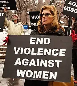 The UN Declaration on the Elimination of Violence Against Women states, "violence against women is a manifestation of historically unequal power relations between men and women" and "violence against women is one of the crucial social mechanisms by which women are forced into a subordinate position compared with men."[7]