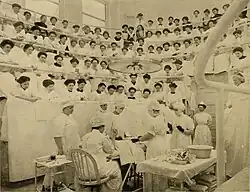 Almost all medical institutions were confronted with the demand for more clinical practice due to the rise of surgery, physical diagnosis, and clinical specialties.[21] During the 1880s, clinical instruction at the Woman's Medical College of Pennsylvania relied mainly on the demonstration clinics.[20]
