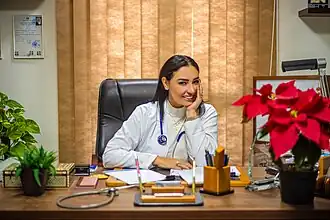 Women's participation in the medical professions was generally limited by legal and social practices during the decades while medicine was professionalizing.[42] Women openly practiced medicine in the allied health professions (nursing, midwifery, etc.), and throughout the nineteenth and twentieth centuries, women made significant gains in access to medical education and medical work through much of the world. These gains were sometimes tempered by setbacks; for instance, Mary Roth Walsh documented a decline in women physicians in the US in the first half of the twentieth century, such that there were fewer women physicians in 1950 than there were in 1900.[43] Through the latter half of the twentieth century, women made gains generally across the board. In the United States, for instance, women were 9% of total US medical school enrollment in 1969; this had increased to 20% in 1976.[43] By 1985, women constituted 16% of practicing American physicians.[44]