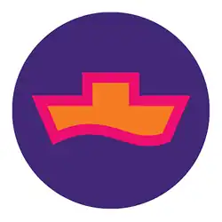 The mobile gynecological clinic was designed and named by Dutch artist and sculptor Atelier van Lieshout. Known as the A-Portable, the clinic is in a retrofitted shipping container. It is painted a light blue color with the Women on Waves logo painted on the sides.[1] To travel, the shipping container is strapped onto ships registered in the Netherlands, and rented by Women on Waves, which is a nongovernmental organization (NGO). Lambert-Beatty describes the logo, which was designed by Kees Ryter in 2001: [the clinic's] "side is emblazoned with a purple spot on which, in turn, floats an orange shape outlined in pink: a squared cross, one quickly realizes, of the kind that symbolizes humanitarian and medical aid."[1] p. 309