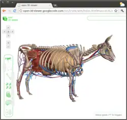 ZygoteBody was launched as Google Body on December 15, 2010. On April Fools' Day 2011, users were greeted with the anatomy of a cow on the home page.[ 1] The cow model is still available as part of the open-3d-viewer open source project.