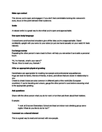 - Put your phone away. If you look busy, people won't want to interrupt you. Your body language should say that you are ready to mingle.