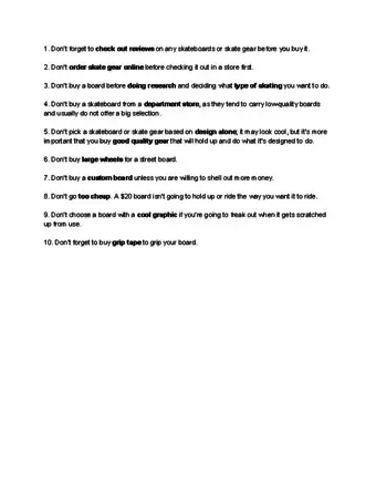 - If this is your first skateboard, you probably don't have the expertise to know exactly what you want out of it, so buying a complete board is usually a good idea.[1]