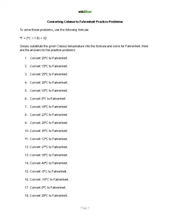 1Use °C = (°F - 32) x to convert Fahrenheit to Celsius. Simply plug in any Fahrenheit temperature and do the math to convert °F to °C.[4]